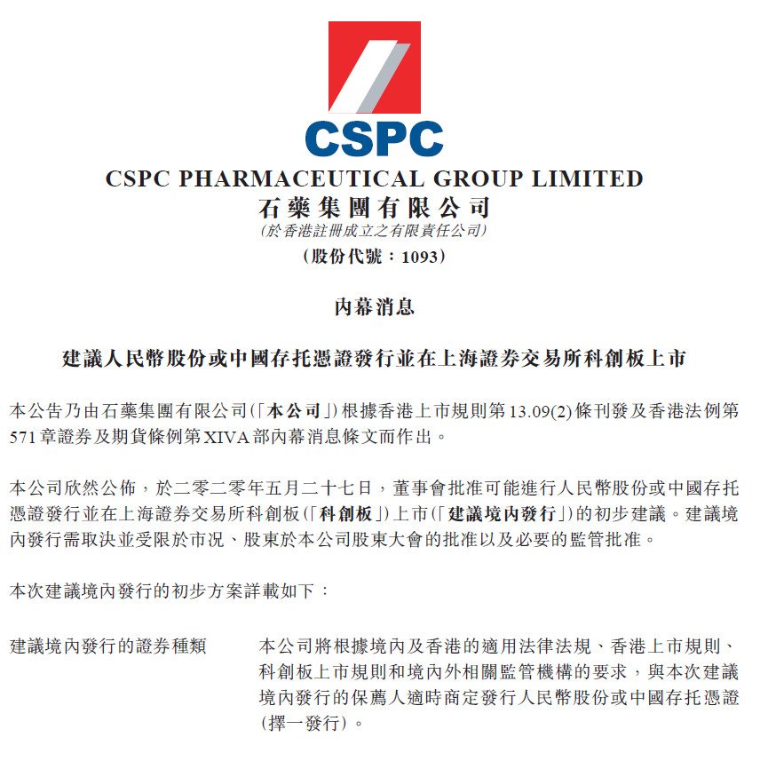 港股石藥集團(tuán)擬登科創(chuàng)板 業(yè)內(nèi):或掀起紅籌股回A潮