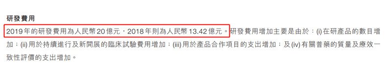 石藥集團(tuán)2019年研發(fā)費用 來源:公司公告
