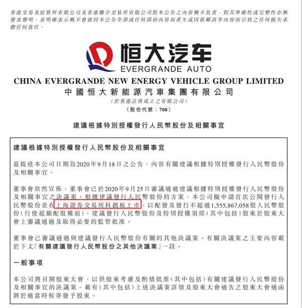 恒大汽車(chē)要來(lái)科創(chuàng)板上市了