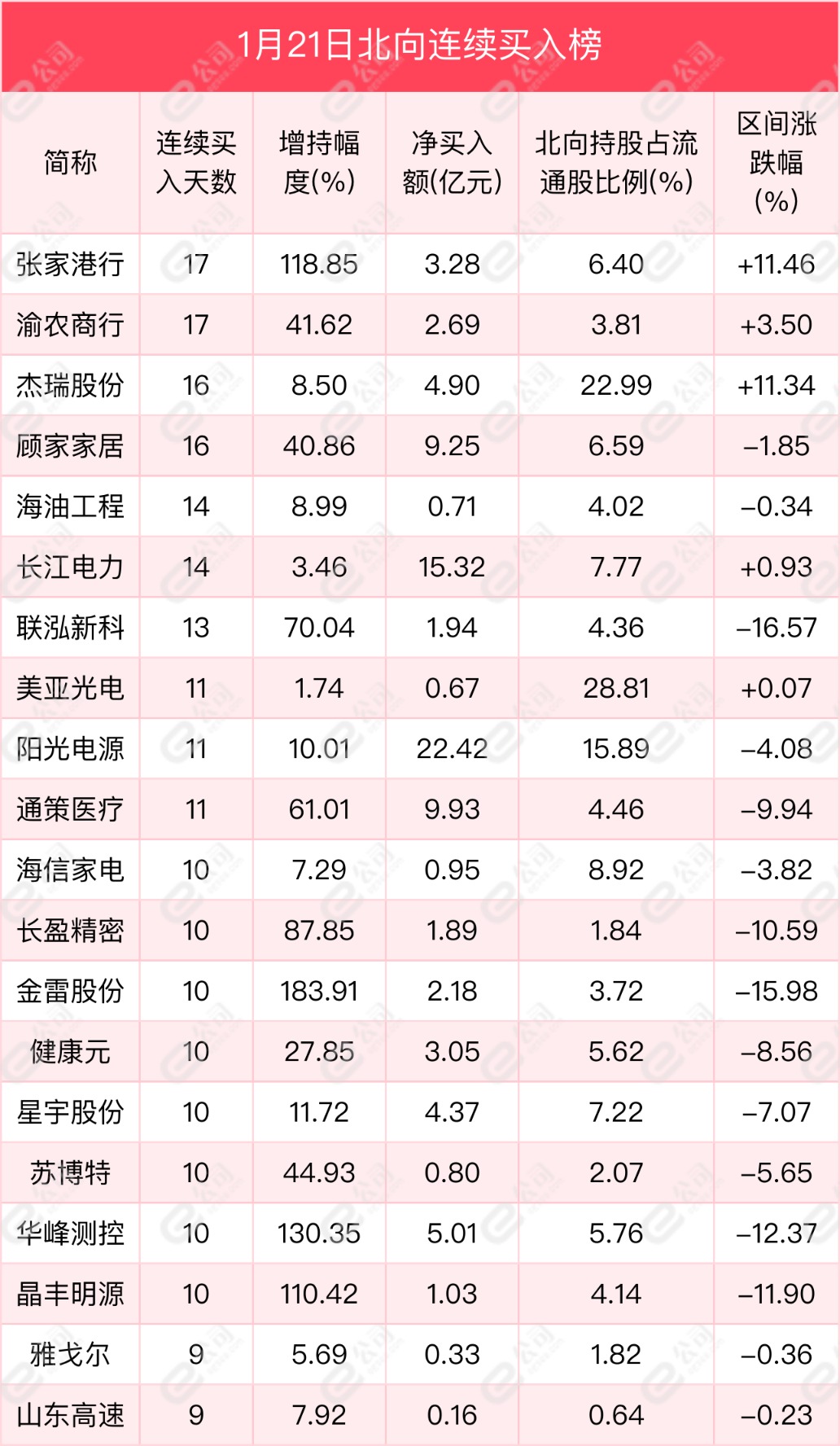 從連續(xù)買賣來看,張家港行、【渝農(nóng)商行(601077)、股吧】、杰瑞股份獲北向資金連續(xù)凈買入天數(shù)居前,分別為17天、17天、16天,期間凈買入額分別為3.28億元、2.69億元、4.9億元,期間增持幅度分別為118.85%、41.62%、8.5%。