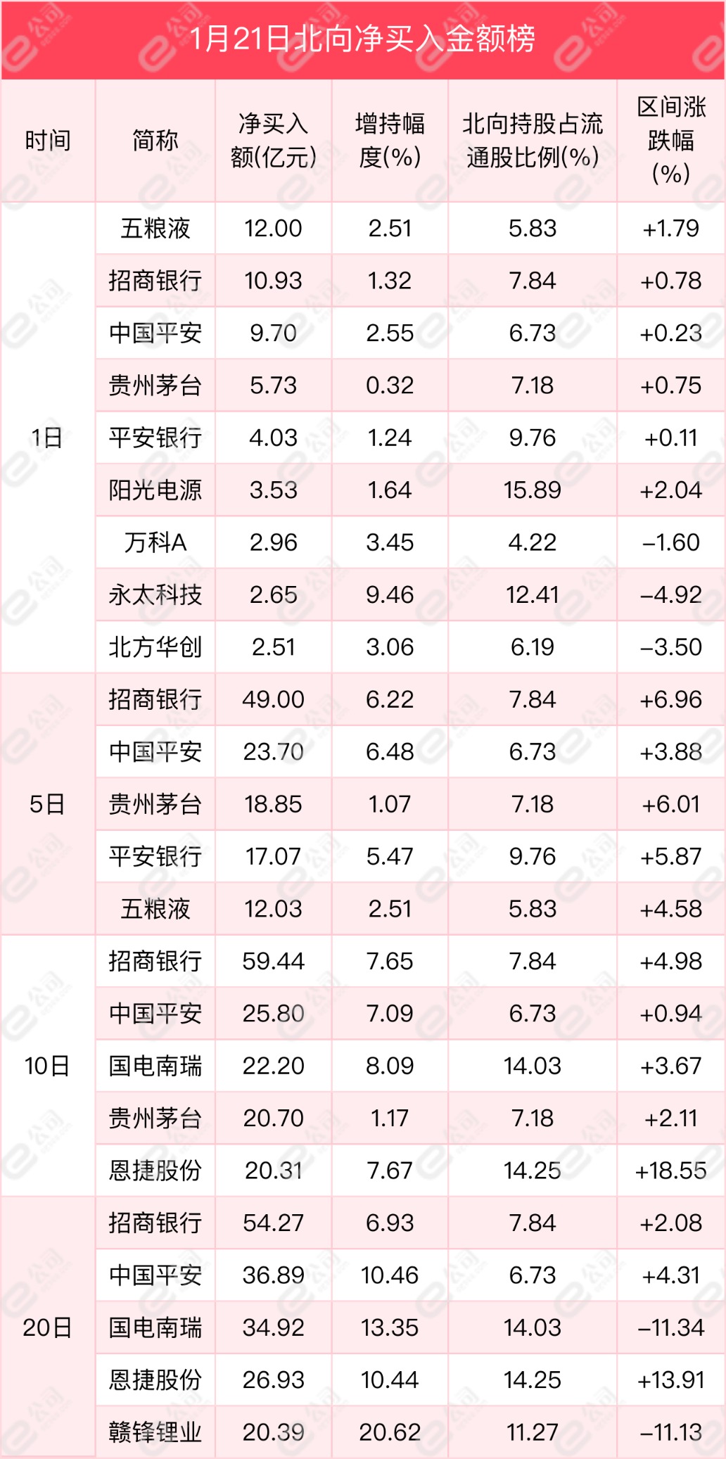 從買賣金額來看,五糧液、招商銀行、中國平安獲北向資金凈買入金額居前,分別為12億元、10.93億元、9.7億元,增持幅度分別為2.51%、1.32%、2.55%。
