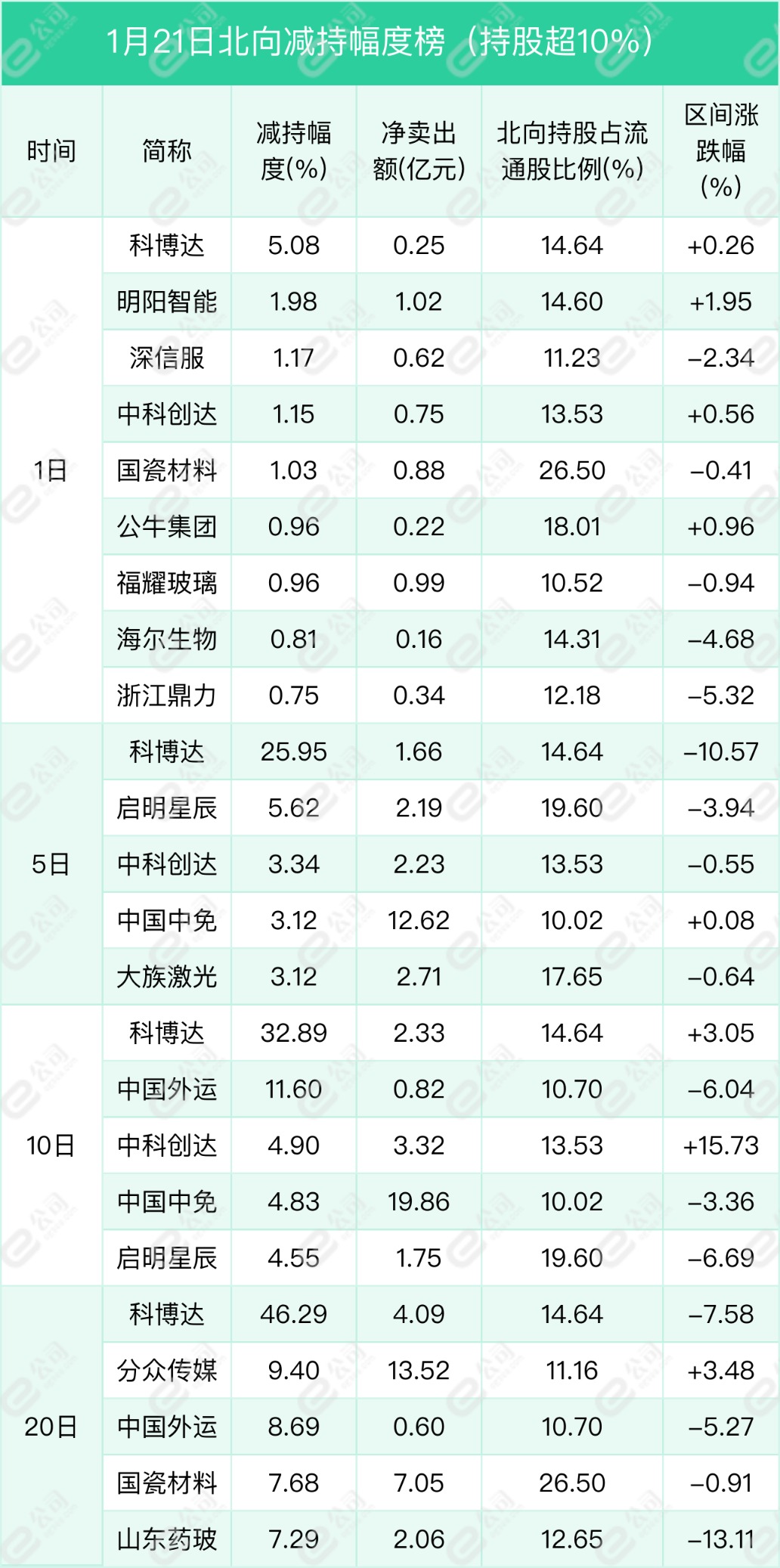 科博達、明陽智能、深信服遭北向資金減持幅度居前,分別為5.08%、1.98%、1.17%。