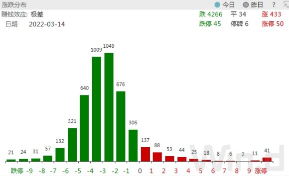 3月14日,A股市場(chǎng)大幅下跌,下跌家數(shù)超4000家,上漲家數(shù)僅400多家,此外,跌停公司數(shù)達(dá)21家。
