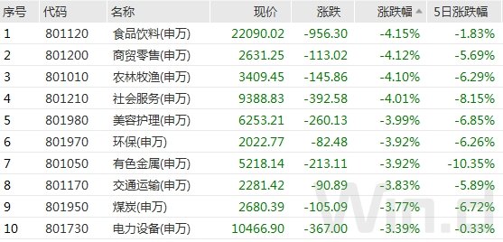 3月14日,受海外市場(chǎng)下跌影響,A股行業(yè)板塊全線(xiàn)下跌,其中食品飲料、商貿(mào)零售、農(nóng)林牧漁、社會(huì)服務(wù)等板塊跌幅均超過(guò)4%,位居板塊前列;美容護(hù)理、環(huán)保、有色金屬、交通運(yùn)輸、煤炭、電力設(shè)備等板塊亦跌幅較大。