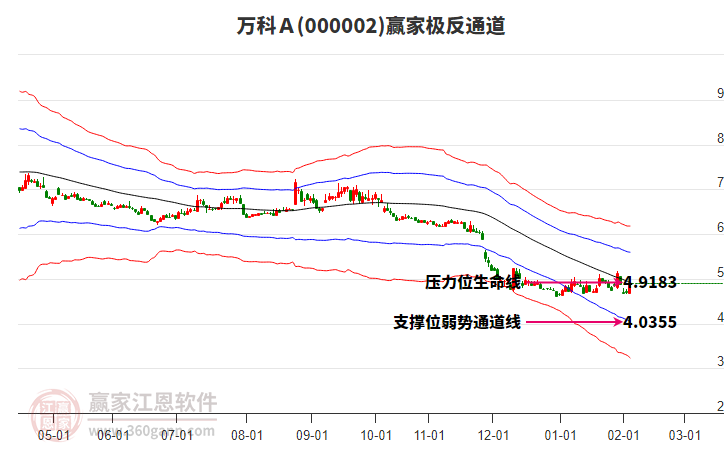 000002萬科A處于贏家江恩空頭主線形態(tài),從1月29日形成頂分型后持續(xù)下跌,今日形成短期初次筑頂信號,短期多頭趨勢已被破壞,中期多頭反彈趨勢延續(xù),但長期處于下跌中。000002萬科A根據(jù)贏家江恩極反