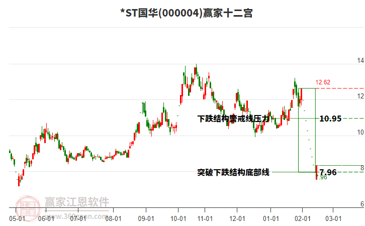 *ST國(guó)華(000004)處于贏家江恩空頭主線形態(tài),從1月26日形成頂分型后持續(xù)下跌,今日形成短期初次筑頂信號(hào),短期多頭趨勢(shì)已被破壞,中長(zhǎng)線均在空頭下跌趨勢(shì)中。*ST國(guó)華(000004)根據(jù)贏家江恩極