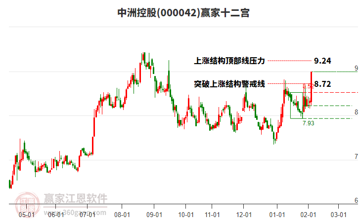 中洲控股根據(jù)贏家江恩極反通道趨勢(shì)工具展示,上方壓力位9.0439,下方支撐位8.0572。中洲控股處于贏家江恩多頭次主線形態(tài),1月7日發(fā)出江恩筑底信號(hào)后,經(jīng)過(guò)27日,今日形成短期筑頂信號(hào),短期多頭趨勢(shì)