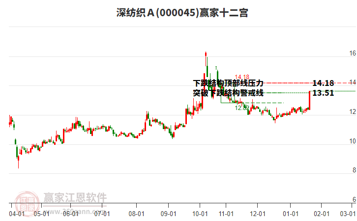 000045深紡織A目前大幅上漲6.69%,走出獨(dú)立行情。000045深紡織A截止目前上穿波段百分比工具關(guān)鍵點(diǎn)位12.9元,根據(jù)贏家江恩波段百分比工具展示,上方第一壓力位13.79,第二壓力位14.6