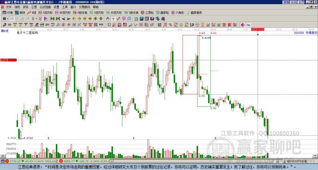 華錦股份(000059)處于贏家江恩空頭主線形態(tài),從11月14日形成頂分型后持續(xù)下跌,今日形成短期初次筑頂信號,短期多頭趨勢已被破壞,中長線均在空頭下跌趨勢中。華錦股份(000059)根據(jù)贏家江恩極反