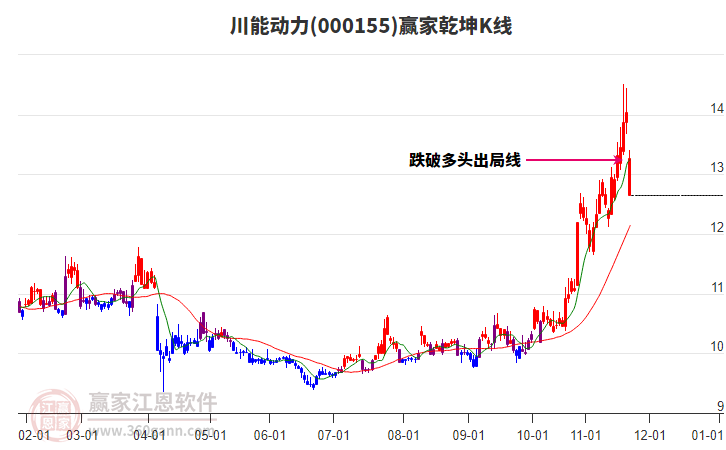 川能動力處于贏家江恩多頭中期回調(diào)形態(tài),今日重心持續(xù)下移,短期延續(xù)下跌趨勢,4月7日發(fā)出中期江恩筑底信號后,經(jīng)過301日,今日形成中期筑頂信號,若持續(xù)下跌,觸發(fā)長期筑頂信號,川能動力將轉(zhuǎn)為空頭主線。川能