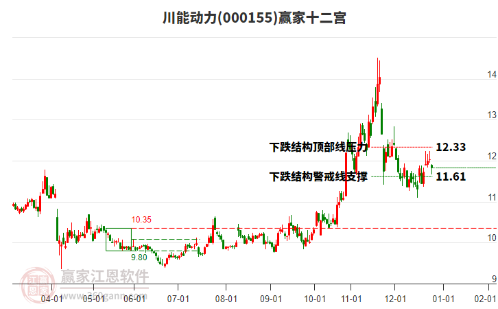 川能動力根據(jù)贏家江恩極反通道趨勢工具展示,上方壓力位14.0881,下方支撐位12.1298。川能動力處于贏家江恩多頭主線形態(tài),從12月30日形成底分型后持續(xù)上攻,今日突破前高形成初次江恩筑底信號,中
