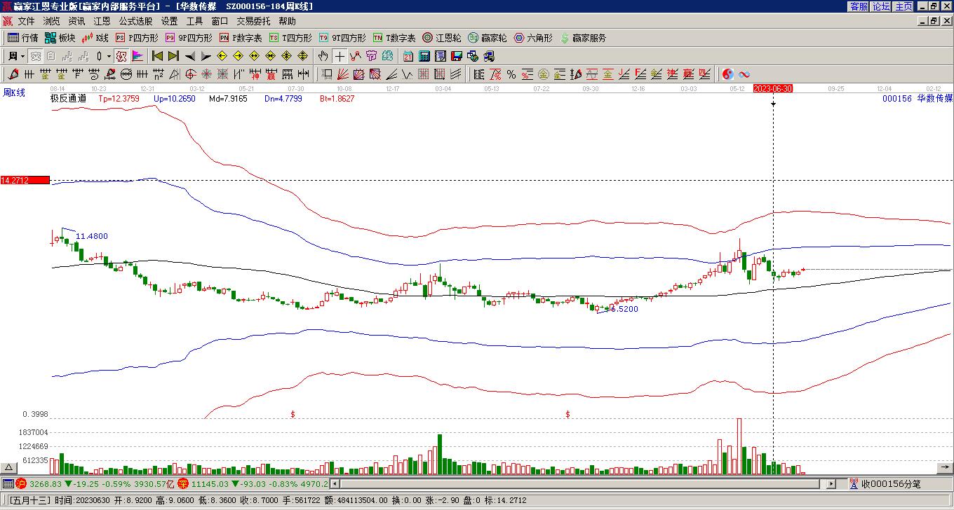 華數(shù)傳媒(000156)目前漲停,與所屬行業(yè)概念下股票形成聯(lián)動效應(yīng)。華數(shù)傳媒(000156)截止目前突破極反通道強勢通道線,根據(jù)贏家江恩極反通道趨勢工具展示,上方壓力位9.9275,下方支撐位9.04