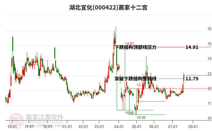 周二湖北宜化000422最高價(jià)14.49上穿了贏家極反通道工具生命線,受到生命線強(qiáng)力壓制,最終收盤停留在在生命線與藍(lán)色下軌線上方的弱勢通道區(qū)域。湖北宜化000422近10個(gè)交易日漲幅3.62%。