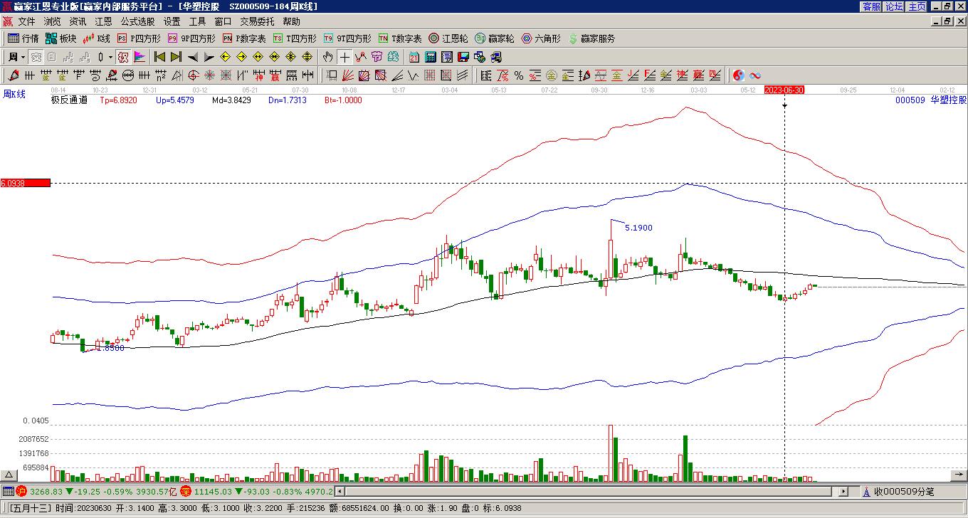 華塑控股(000509)根據(jù)贏家江恩極反通道趨勢(shì)工具展示,上方壓力位3.6181,下方支撐位2.8565。華塑控股(000509)處于贏家江恩多頭主線形態(tài),1月15日發(fā)出江恩筑頂信號(hào)后,經(jīng)過(guò)4日,今日