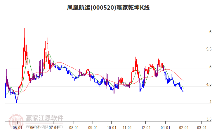 000520鳳凰航運(yùn)2月2日低開,相比昨日微跌0.69%,目前自前期高點(diǎn)5.32,到現(xiàn)在4.31,已經(jīng)下跌1.01元,下跌幅度23.43%,經(jīng)歷了27日,距離前期2025年4月9日重要低點(diǎn)3.44元差