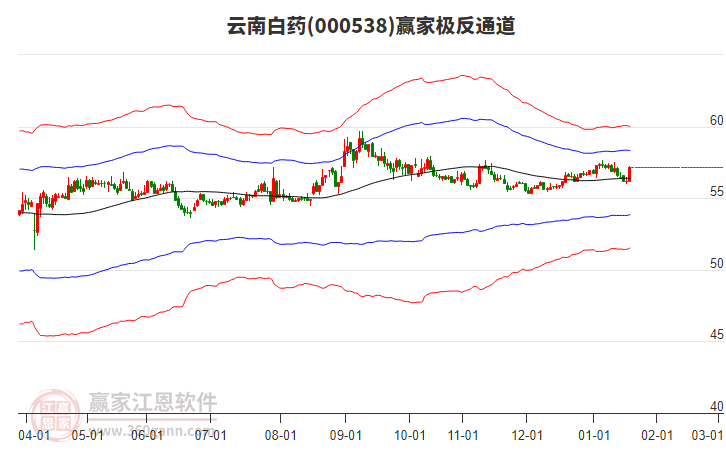 依據(jù)贏家江恩系統(tǒng)趨勢(shì)工具極反通道分析判斷云南白藥000538運(yùn)行在生命線以下弱勢(shì)區(qū)域,根據(jù)規(guī)則該股短線輕倉(cāng)參與,股價(jià)跌至弱勢(shì)外軌線后波段再結(jié)合其它工具信號(hào)建倉(cāng)。應(yīng)用口訣是:生命線上強(qiáng)勢(shì)走,生命線下難抬頭;紅黃兩條外軌線,壓力支撐顯勢(shì)頭。