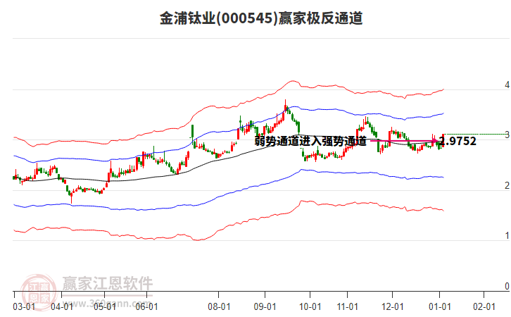 金浦鈦業(yè)處于贏家江恩多頭次主線形態(tài),2月5日發(fā)出江恩筑底信號(hào)后,經(jīng)過7日,今日形成短期筑頂信號(hào),短期多頭趨勢(shì)已被破壞,中長(zhǎng)期多頭趨勢(shì)依舊保持。金浦鈦業(yè)根據(jù)贏家江恩極反通道趨勢(shì)工具展示,上方壓力位2.9
