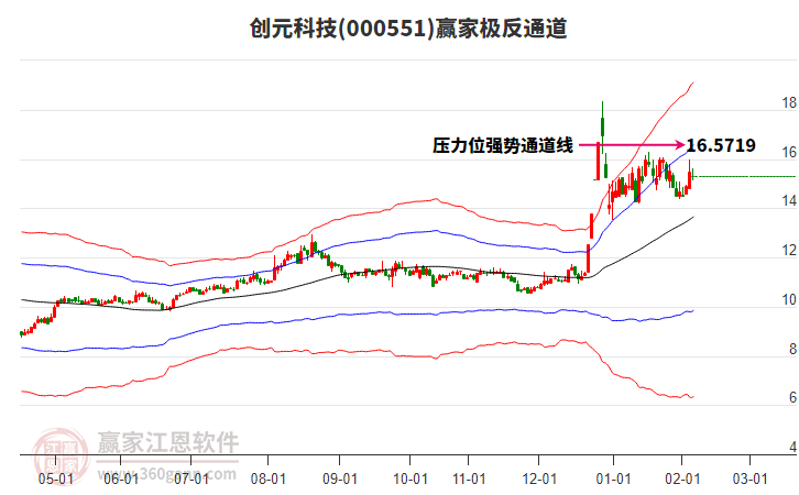 今日000551創(chuàng)元科技最高價(jià)15.14上穿了贏家極反通道工具上方紅色外軌線,受到上方紅色外軌線強(qiáng)力壓制,最終收盤停留在在上方紅色外軌線與藍(lán)色外軌線上方的超強(qiáng)通道區(qū)域。000551創(chuàng)元科技近10個(gè)交易
