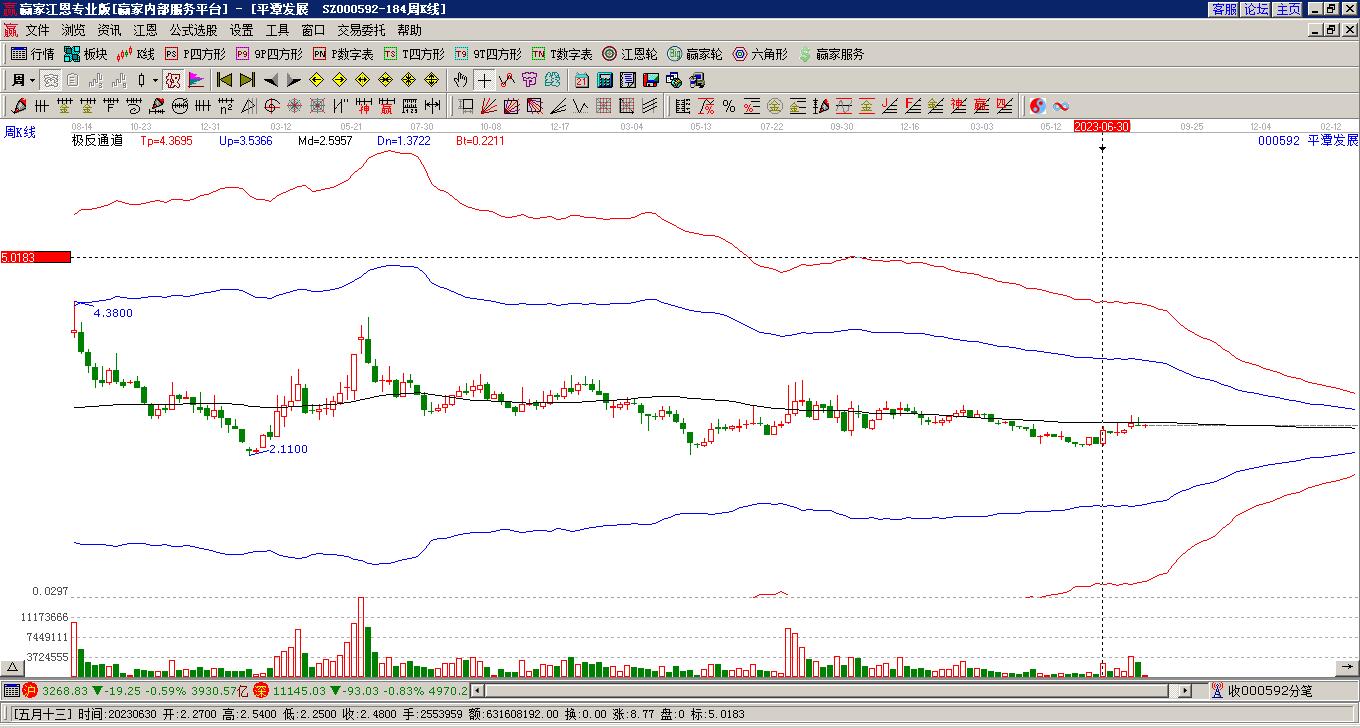 今天000592平潭發(fā)展?jié)q停,近期處于空頭趨勢(shì)