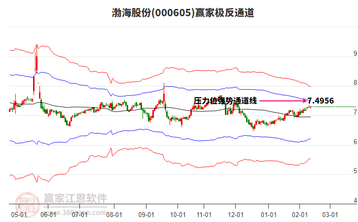 依據(jù)贏家江恩系統(tǒng)趨勢工具極反通道分析判斷渤海股份000605運行在生命線以下弱勢區(qū)域,根據(jù)規(guī)則該股短線輕倉參與,股價跌至弱勢外軌線后波段再結(jié)合其它工具信號建倉。應(yīng)用口訣是:生命線上強勢走,生命線下難抬頭;紅黃兩條外軌線,壓力支撐顯勢頭。