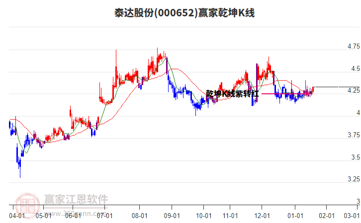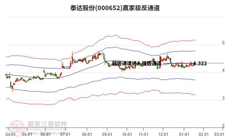 泰達股份處于贏家江恩多頭中期回調(diào)形態(tài),從1月27日形成中期頂分型后中期重心持續(xù)下移,今日跌破前低形成初次筑頂信號,長期處于多頭上漲趨勢。泰達股份根據(jù)贏家江恩極反通道趨勢工具展示,上方壓力位4.3288