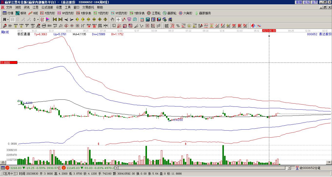 泰達(dá)股份000652最高價(jià)挑戰(zhàn)藍(lán)色外軌線 大幅上漲6.04%