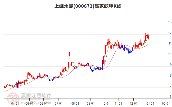 上峰水泥(000672)目前漲停,所屬板塊租售同權(quán)、一帶一路短期底分型后持續(xù)上攻。上峰水泥(000672)截止目前突破極反通道強(qiáng)勢通道線,根據(jù)贏家江恩極反通道趨勢工具展示,上方壓力位13.7359,下