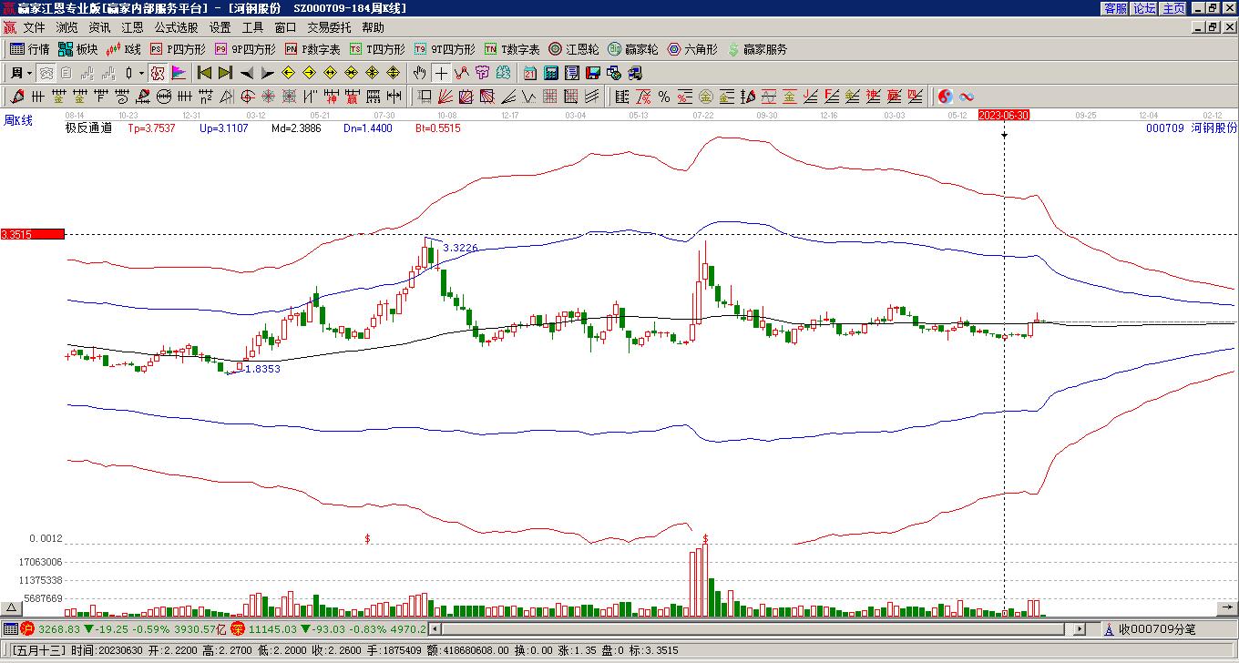 河鋼股份(000709)根據(jù)贏家江恩極反通道趨勢工具展示,上方壓力位2.6423,下方支撐位2.3854。河鋼股份(000709)處于贏家江恩多頭主線形態(tài),今日再次發(fā)出江恩底分型并發(fā)出江恩筑底信號,中