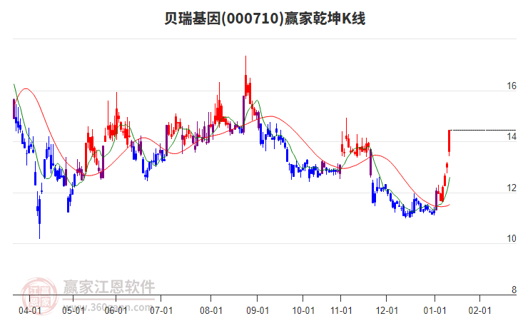 000710貝瑞基因目前漲停,與所屬行業(yè)概念下股票形成聯(lián)動效應。000710貝瑞基因截止目前突破極反通道強勢通道線,根據(jù)贏家江恩極反通道趨勢工具展示,上方壓力位15.6076,下方支撐位14.0555