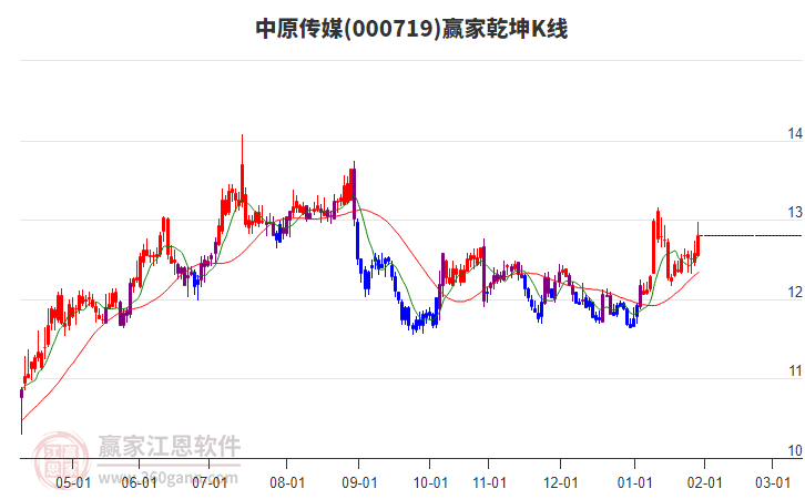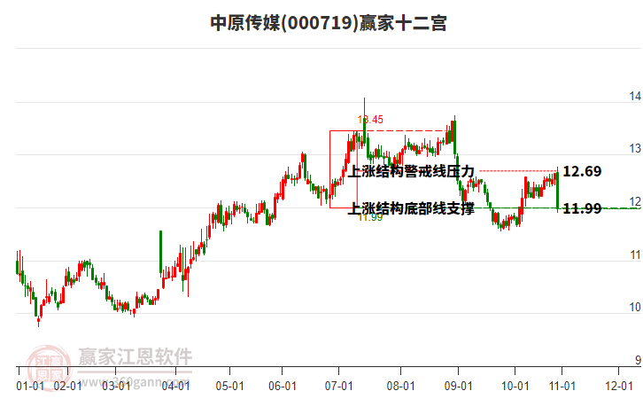 000719中原傳媒根據(jù)贏家江恩極反通道趨勢工具展示,上方壓力位13.1023,下方支撐位12.127。000719中原傳媒處于贏家江恩多頭次主線形態(tài),1月6日發(fā)出江恩筑底信號后,經(jīng)過21日,今日形成