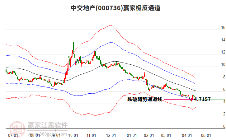 依據(jù)贏家江恩系統(tǒng)趨勢工具極反通道分析判斷中交地產(chǎn)000736運行在生命線以下弱勢區(qū)域,根據(jù)規(guī)則該股短線輕倉參與,股價跌至弱勢外軌線后波段再結(jié)合其它工具信號建倉。應(yīng)用口訣是:生命線上強勢走,生命線下難抬頭;紅黃兩條外軌線,壓力支撐顯勢頭。