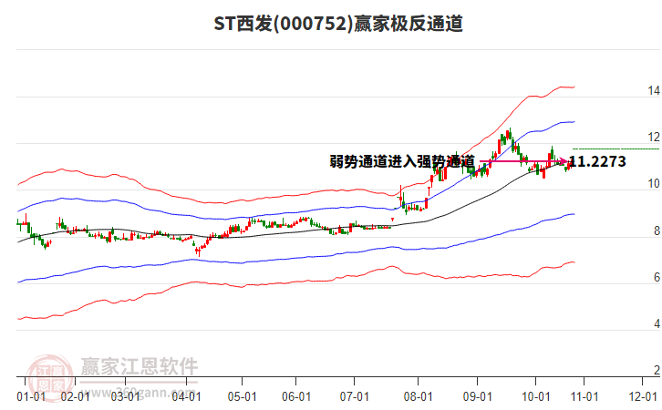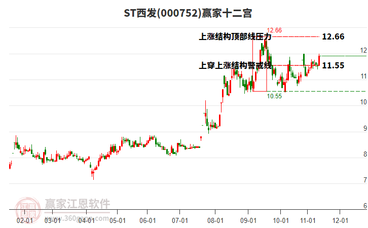 000752ST西發(fā)目前一字板漲停,走出獨(dú)立行情。000752ST西發(fā)截止目前突破極反通道生命線,根據(jù)贏家江恩極反通道趨勢(shì)工具展示,上方壓力位12.9327,下方支撐位11.2273。ST西發(fā)今日跳空