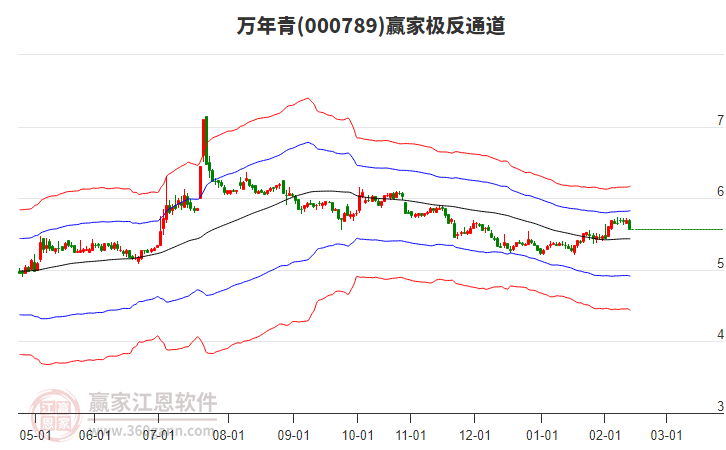 依據(jù)贏家江恩系統(tǒng)趨勢(shì)工具極反通道分析判斷萬年青000789運(yùn)行在生命線以下弱勢(shì)區(qū)域,根據(jù)規(guī)則該股短線輕倉參與,股價(jià)跌至弱勢(shì)外軌線后波段再結(jié)合其它工具信號(hào)建倉。應(yīng)用口訣是:生命線上強(qiáng)勢(shì)走,生命線下難抬頭;紅黃兩條外軌線,壓力支撐顯勢(shì)頭。