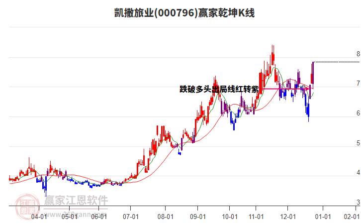 000796凱撒旅業(yè)近期高點(diǎn)7.84持續(xù)下跌,漲幅回落22.31%,近期處于空頭趨勢(shì)