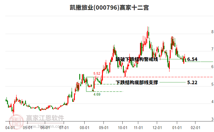 2月13日股價(jià)處于2022年5月19日形成的下跌結(jié)構(gòu)底部線5.22上方區(qū)域,該股自近期高點(diǎn)6.78跌至今日6.29,跌幅7.79%。依據(jù)贏家十二宮多空能量守恒規(guī)則,若股價(jià)不能有效站穩(wěn)底部線,下方多空能量平衡位需結(jié)合前方贏家十二宮結(jié)構(gòu)尋找。