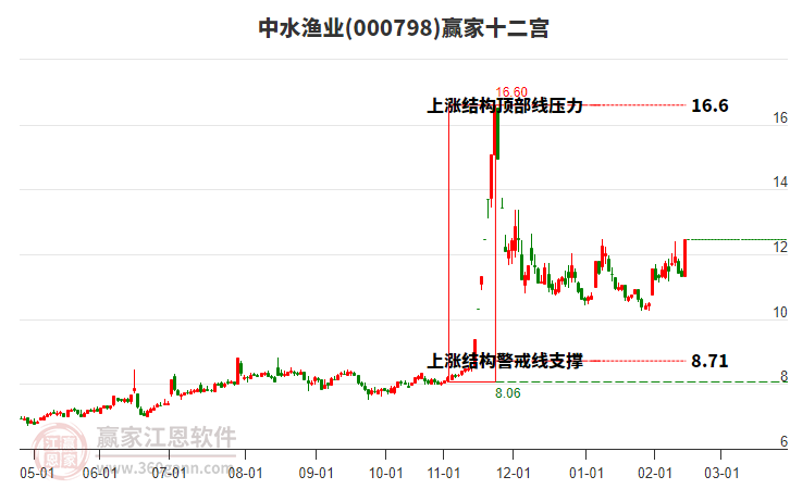 中水漁業(yè)(000798)處于贏家江恩多頭中期回調(diào)形態(tài),從1月27日形成底分型后持續(xù)上攻,今日突破前高形成初次江恩筑底信號,中期雖然處于下跌中,但長期多頭趨勢延續(xù)。中水漁業(yè)(000798)目前漲停,所屬