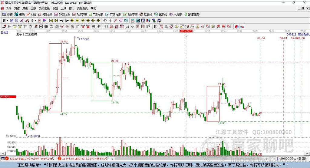 京山輕機在高點14.45后,回調(diào)了2.49元,江恩周天時間循環(huán)線顯示近期時間窗2月24日