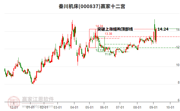 000837秦川機床處于贏家江恩空頭中期反彈形態(tài),從12月17日形成底分型后持續(xù)上攻,今日突破前高形成初次江恩筑底信號,中期多頭趨勢延續(xù),但長期處于下跌中。000837秦川機床根據(jù)贏家江恩極反通道趨勢