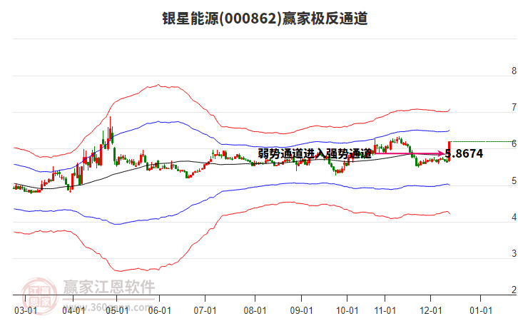 當(dāng)天銀星能源000862最高價(jià)6.71挑戰(zhàn)了贏家極反通道工具藍(lán)色外軌線,受到藍(lán)色外軌線強(qiáng)力壓制,最終收盤停留在在藍(lán)色外軌線與生命線上方的強(qiáng)勢通道區(qū)域。銀星能源000862近10個(gè)交易日漲幅4.0%。