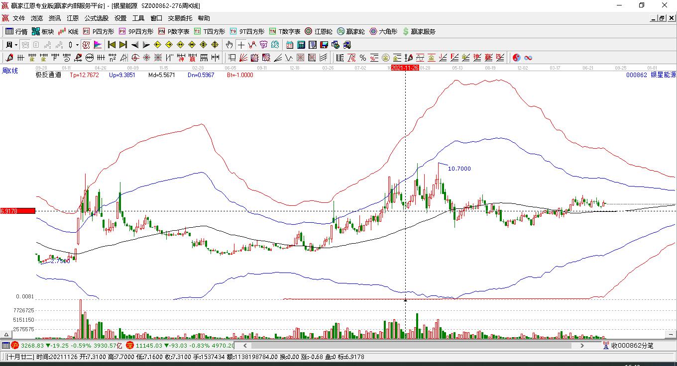 當(dāng)天銀星能源000862最高價(jià)6.71挑戰(zhàn)了贏家極反通道工具藍(lán)色外軌線(xiàn),受到藍(lán)色外軌線(xiàn)強(qiáng)力壓制,最終收盤(pán)停留在在藍(lán)色外軌線(xiàn)與生命線(xiàn)上方的強(qiáng)勢(shì)通道區(qū)域。銀星能源000862近10個(gè)交易日漲幅4.0%。