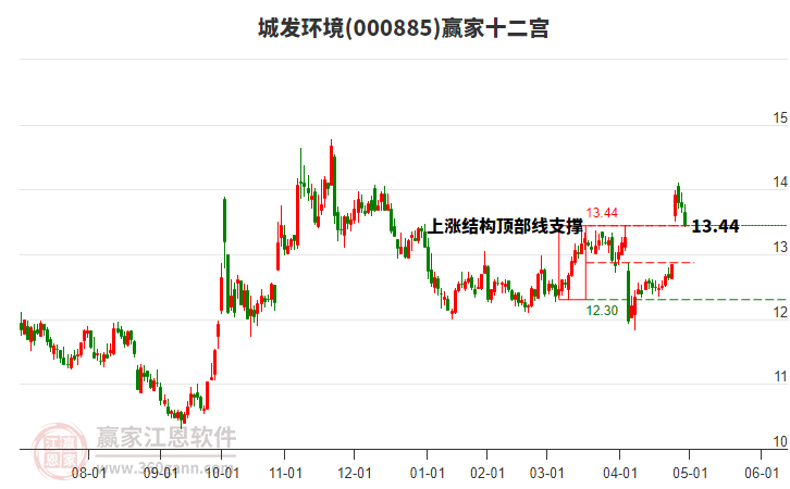 000885城發(fā)環(huán)境根據(jù)贏家江恩極反通道趨勢工具展示,上方壓力位13.8423,下方支撐位12.7959。000885城發(fā)環(huán)境處于贏家江恩多頭中期回調(diào)形態(tài),從1月26日形成頂分型后持續(xù)下跌,重心下移,
