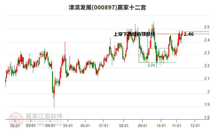 000897津?yàn)I發(fā)展處于贏家江恩多頭主線形態(tài),12月4日發(fā)出江恩筑頂信號后,經(jīng)過22日,今日再次發(fā)出江恩底分型并發(fā)出江恩筑底信號,中期雖然處于回調(diào)中,但長期多頭趨勢延續(xù)。000897津?yàn)I發(fā)展根據(jù)贏家江