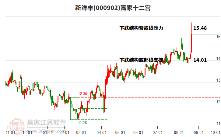 新洋豐處于贏家江恩多頭主線形態(tài),從1月14日形成底分型后持續(xù)上攻,今日突破前高形成初次江恩筑底信號,中長期多頭趨勢依舊保持。新洋豐根據(jù)贏家江恩極反通道趨勢工具展示,上方壓力位17.201,下方支撐位1