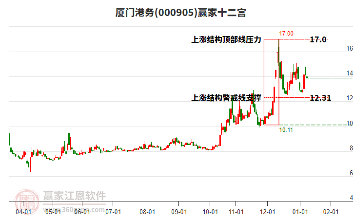 廈門港務(wù)根據(jù)贏家江恩極反通道趨勢工具展示,上方壓力位15.5255,下方支撐位11.9382。廈門港務(wù)處于贏家江恩多頭次主線形態(tài),12月8日發(fā)出江恩筑底信號后,經(jīng)過22日,今日形成短期筑頂信號,短期多
