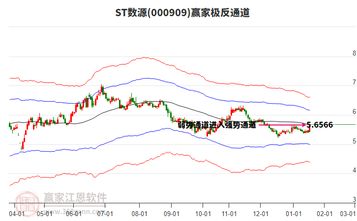 依據(jù)贏家江恩系統(tǒng)趨勢工具極反通道分析判斷ST數(shù)源000909運行在生命線以上強勢區(qū)域,根據(jù)規(guī)則該股可短線、波段結(jié)合操作;結(jié)合物極必反的原理通過分鐘圖做盤中差價,應(yīng)用口訣是:生命線上強勢走,生命線下難抬頭;紅黃兩條外軌線,壓力支撐顯勢頭。