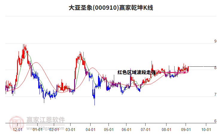 依據(jù)贏家江恩系統(tǒng)趨勢工具極反通道分析判斷大亞圣象000910運行在生命線以下弱勢區(qū)域,根據(jù)規(guī)則該股短線輕倉參與,股價跌至弱勢外軌線后波段再結(jié)合其它工具信號建倉。應(yīng)用口訣是:生命線上強勢走,生命線下難抬頭;紅黃兩條外軌線,壓力支撐顯勢頭。