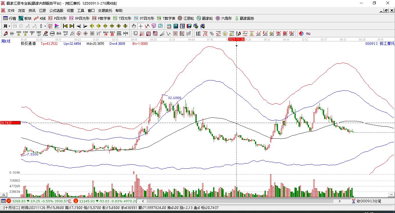 錢江摩托處于贏家江恩空頭主線形態(tài),2月6日發(fā)出江恩筑底信號后,經(jīng)過4日,今日形成短期筑頂信號,短期多頭趨勢已被破壞,中長線均在空頭下跌趨勢中。錢江摩托根據(jù)贏家江恩極反通道趨勢工具展示,上方壓力位15.