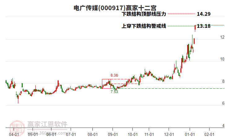 電廣傳媒(000917)目前漲停,與所屬行業(yè)概念下股票形成聯動效應。電廣傳媒(000917)截止目前上穿黃金價格分割工具關鍵點位13.12元,根據贏家江恩黃金價格分割工具展示,上方第一壓力位14.31