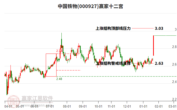 中國鐵物處于贏家江恩多頭主線形態(tài),今日重心上移,短期持續(xù)上漲,從12月17日形成中期底分型后,行情經(jīng)歷一波上漲,突破前高形成中期初次筑底信號,長期處于多頭上漲趨勢。中國鐵物目前漲停,所屬板塊倉儲物流、