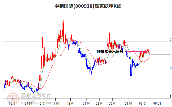 依據(jù)贏家江恩系統(tǒng)趨勢工具極反通道分析判斷中鋼國際000928運行在生命線以下弱勢區(qū)域,根據(jù)規(guī)則該股短線輕倉參與,股價跌至弱勢外軌線后波段再結(jié)合其它工具信號建倉。應(yīng)用口訣是:生命線上強勢走,生命線下難抬頭;紅黃兩條外軌線,壓力支撐顯勢頭。